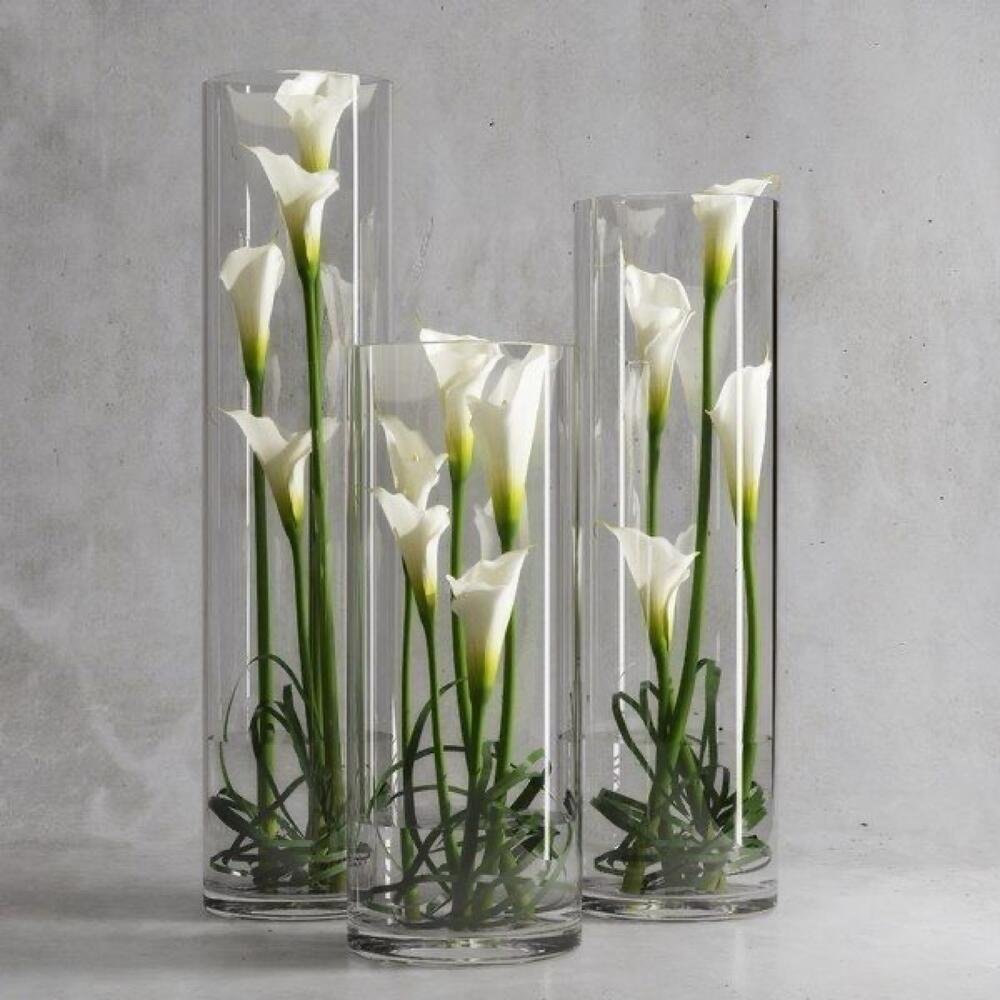 20 white Calla lilies in 3 clear glass vase
