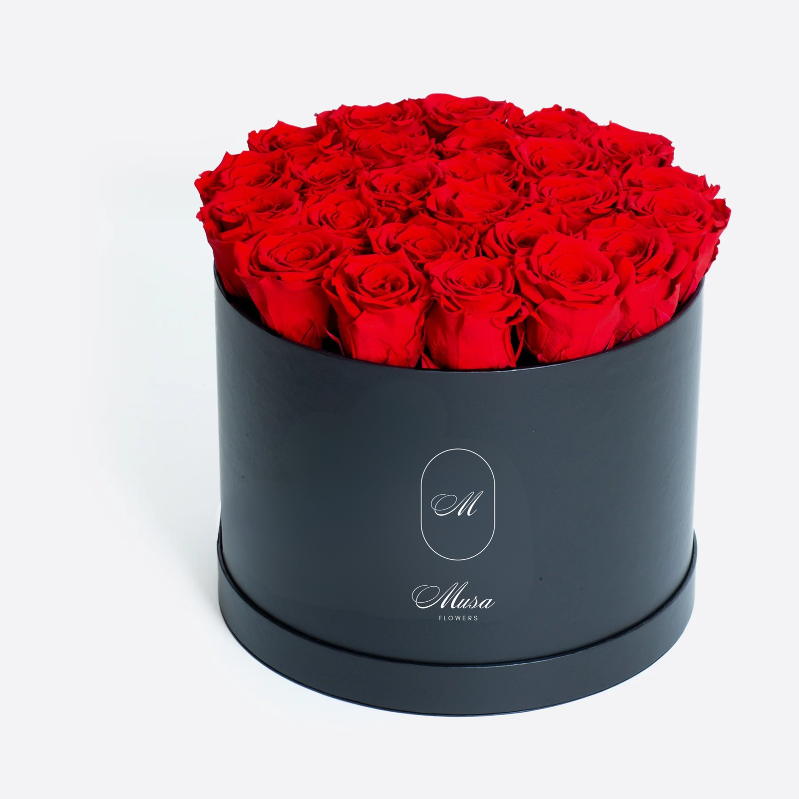 + Free ShippingA striking expression of passion and elegance, this arrangement features 29 premium red roses meticulously arranged in a luxurious black round box. The deep black base creates a bold contrast, allowing the rich red blooms to stand out with timeless sophistication. Finished with refined detailing, this box is designed for those who appreciate modern luxury and powerful gestures.
